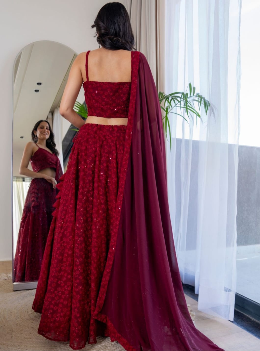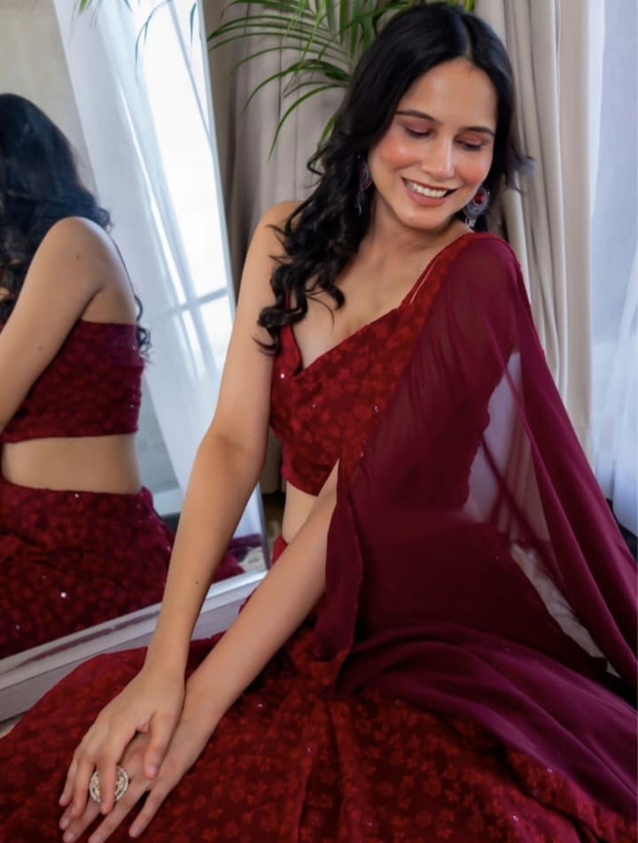 + Free ShippingA rich maroon lehenga set crafted for comfort, style, and effortless festive glow.
